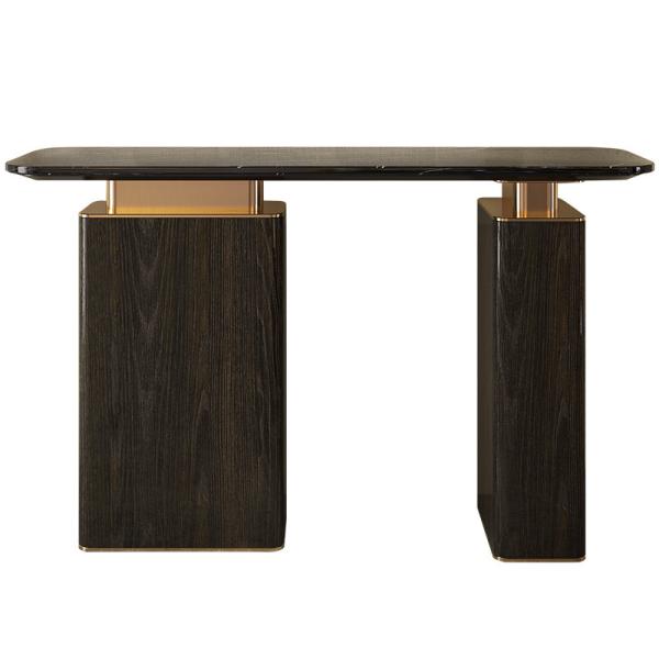 Walnut Veneer Stainless Steel Console Table Wall Table Brass Gold Metal Base Marble Top Hotel Villa And Living Room Use